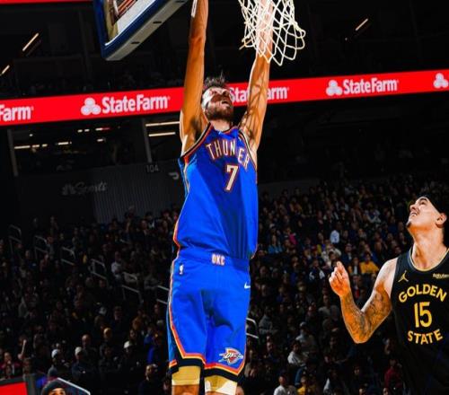 此后霍姆格伦和米切尔下起三分雨,多特命中三分后,雷霆已经拉开21分分差。勇士这边依靠理查德单打独斗,亚历山大和多特继续内外开花,半场雷霆64-45勇士。进入第三节,杰威上篮+亚历山大单打,雷霆就守在20分分差线上。后半段亚历山大撤步三分球打破平衡,米切尔突破上篮时,勇士队员自动让开一条路!此后维金斯和亚历山大继续下三分雨,霍姆格伦也续上三分,勇士被彻底打花。三节打完,雷霆95-66勇士,第四节失去悬念。最终勇士94-131惨败雷霆,雷霆迎来四连胜。